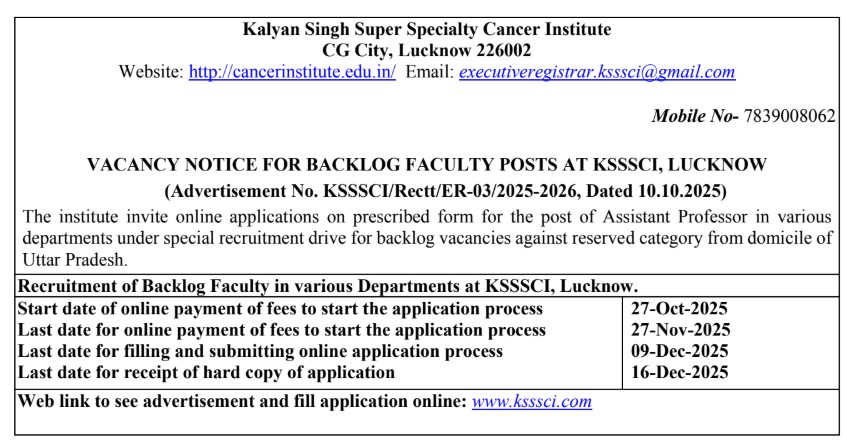 Adv. No.: KSSSCI/Rectt/ER-03/2025-2026, Dated 10.10.2025