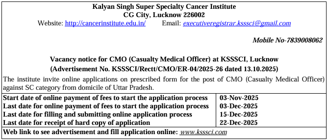 Adv. No.: KSSSCI/Rectt/CMO/ER-04/2025-26, Dated 13.10.2025