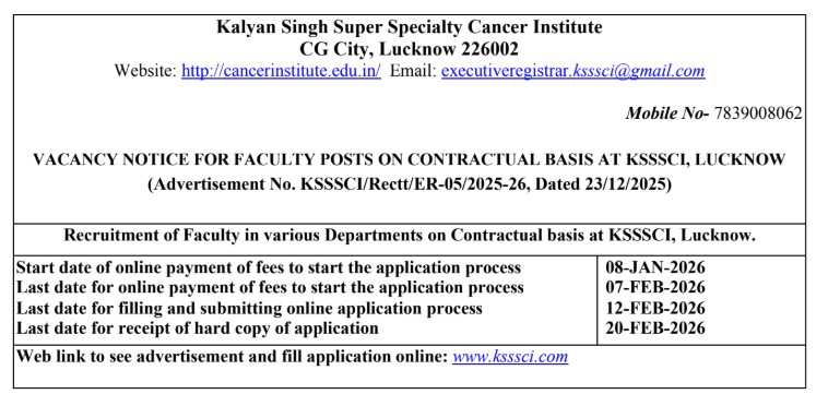 VACANCY NOTICE FOR FACULTY POSTS ON CONTRACTUAL BASIS AT KSSSCI, LUCKNOW